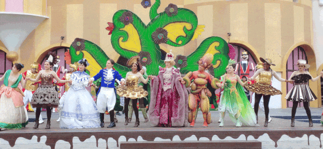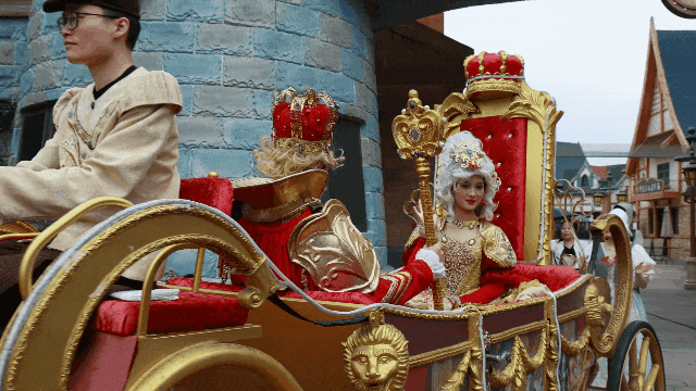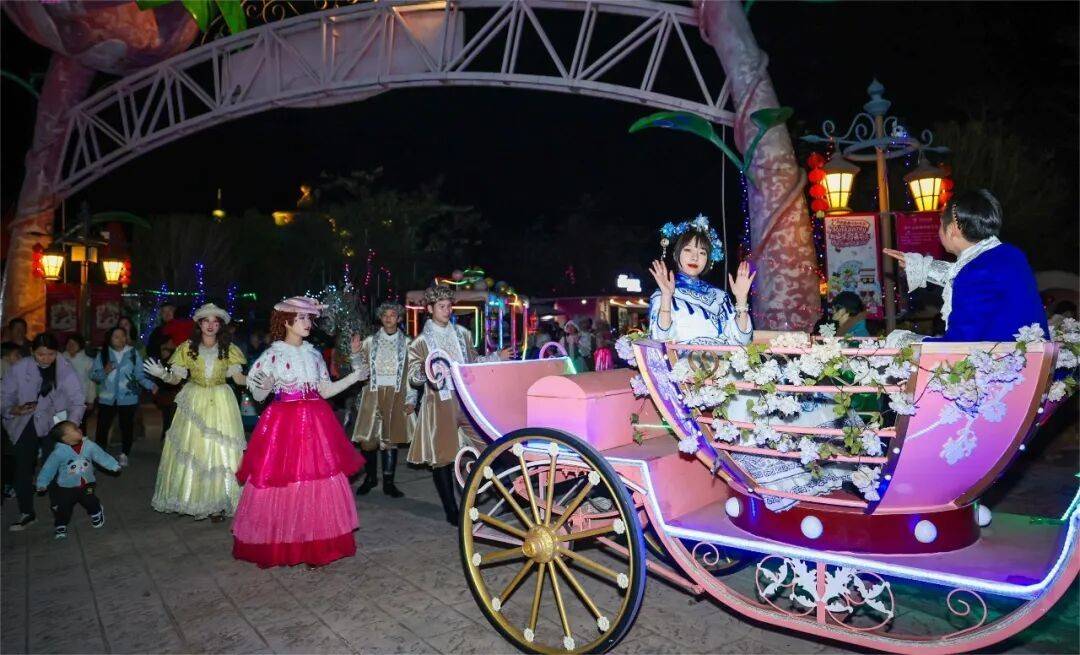国旗飘扬、花艺缠绕的花车巡游将贯穿乐园