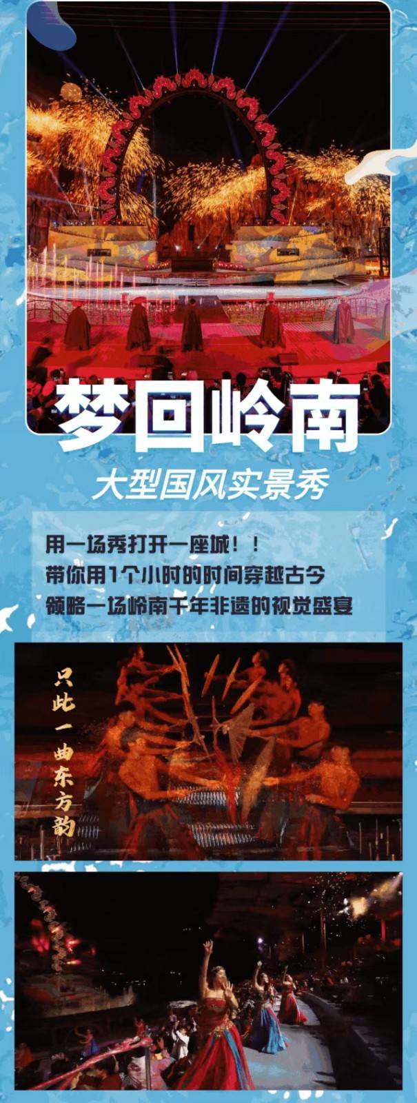 ⚠凭票可在有效期内选择连续游玩3天,每天可不限次游玩套票游乐项目,以及门票整个游玩期间《梦回岭南》演艺项目(普通席)限观影1次 ,设备和演出开放情况请以游玩当日乐园实际开放为准。
