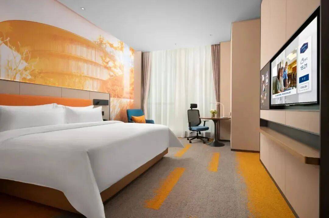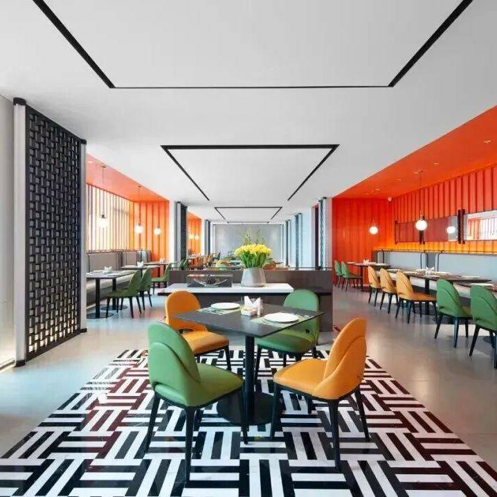 房型在外观设计上采用了黄、橙两色用以点缀,房间因此拥有着一定的活力和激情