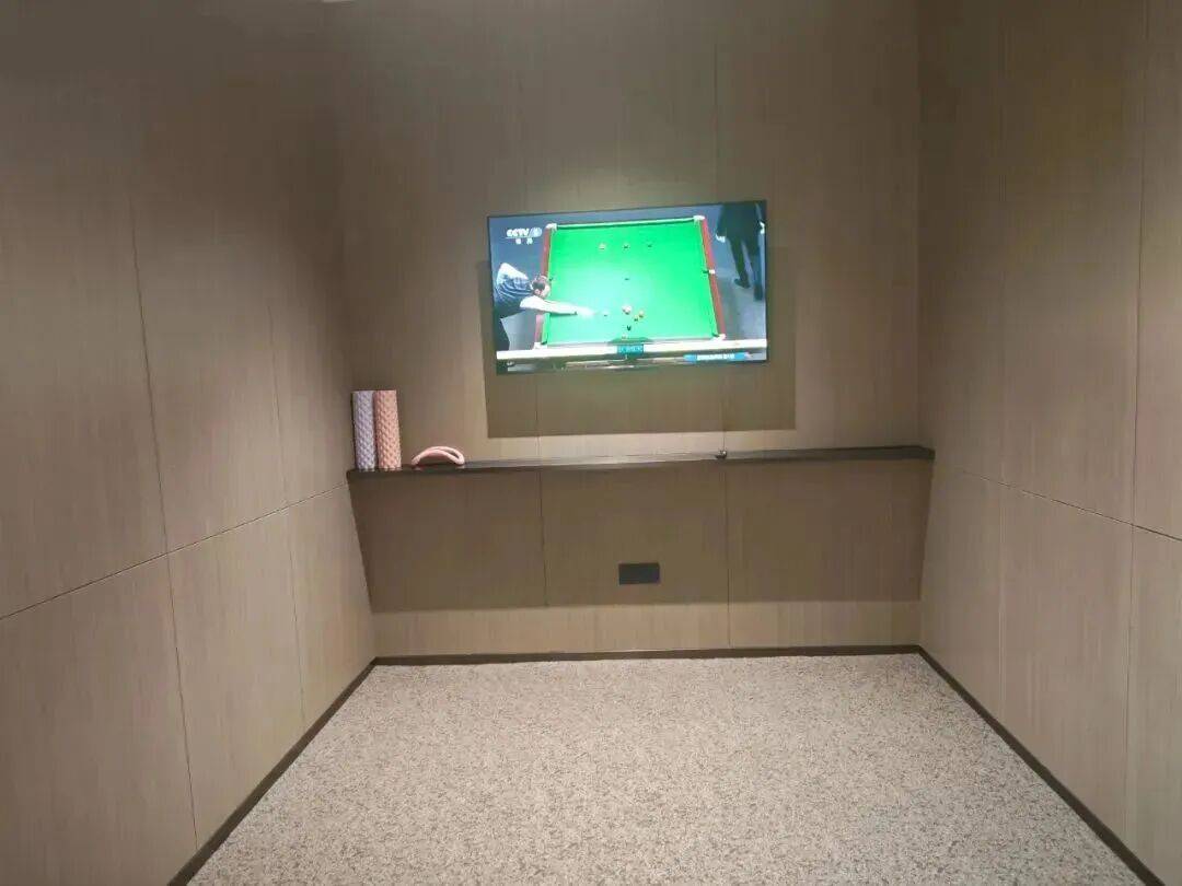 除了上述运动器材,健身房内也设有单独的瑜伽室。瑜伽室的私密性很好,且配有电视以供学习使用。
