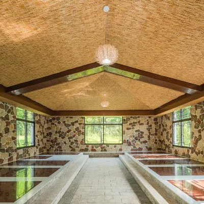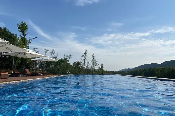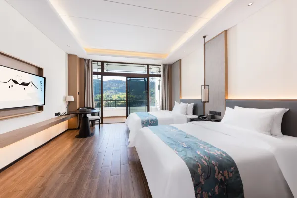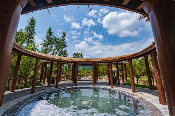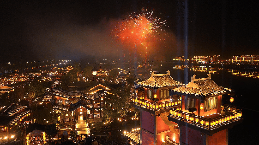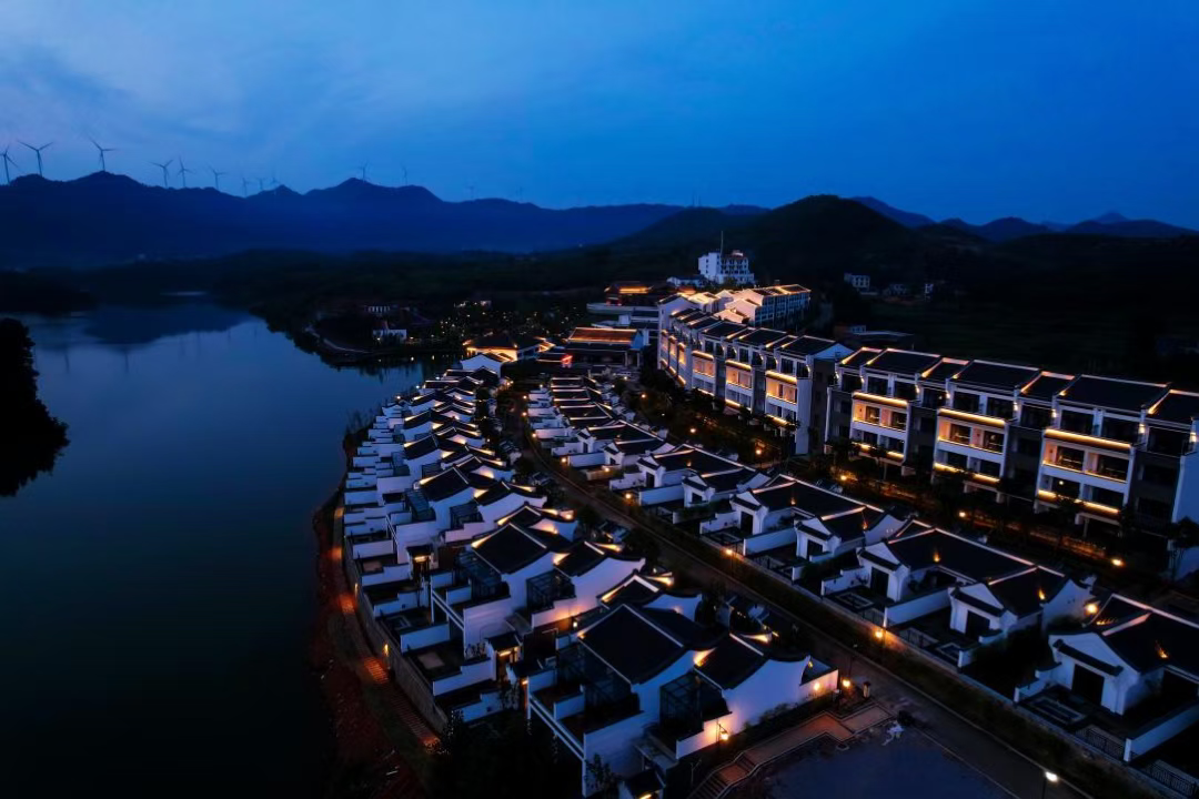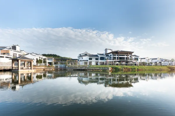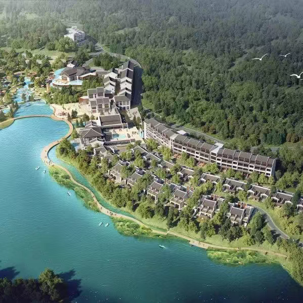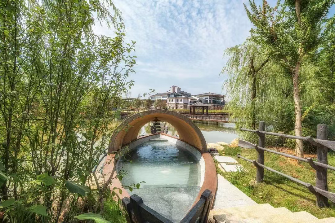 度假村整体建筑融合了江南水乡的温婉与典雅,白墙黛瓦、小桥流水——徽派风格,沉浸体验湘风古韵