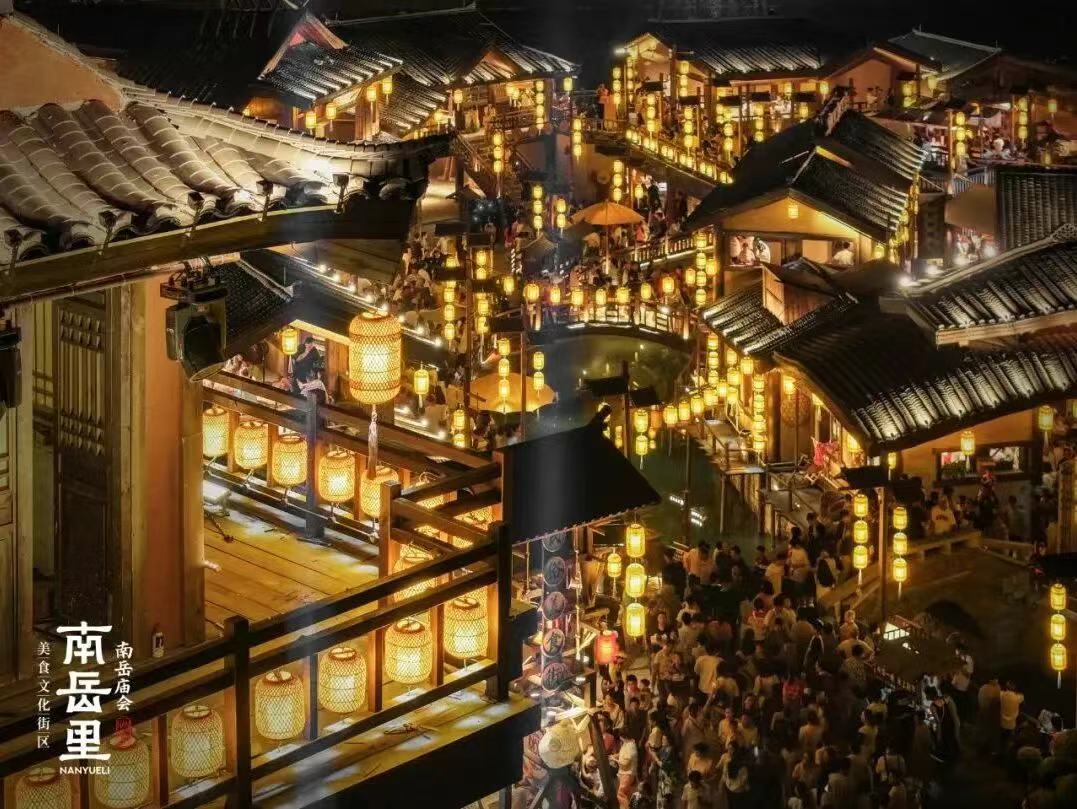 南岳里位于南岳衡山脚下,景区占地80亩。依托南岳当地文化以及独一无二的仿古民居风貌,还原“古风”市集,营造一种身临古时瓦肆的繁盛景象。景区将“旅游+休闲+餐饮+文创+演艺”等多元化元素紧密结合,是一个聚焦南岳特色“庙会民俗”主题的美食综合体。
