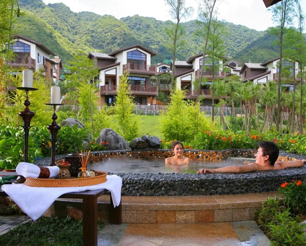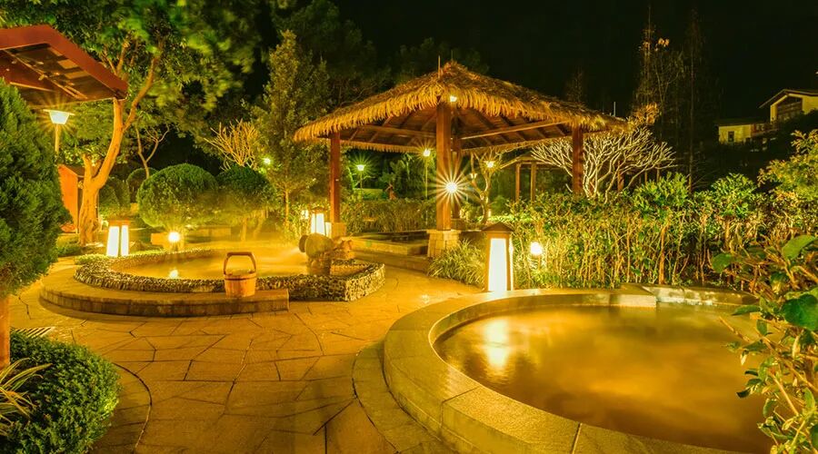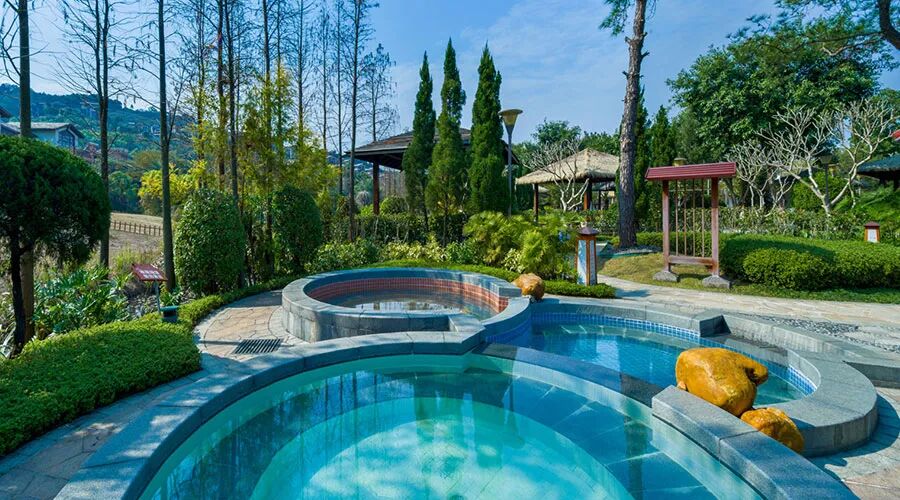 30多个不同主题的汤池构建在半山别墅怀抱之中,