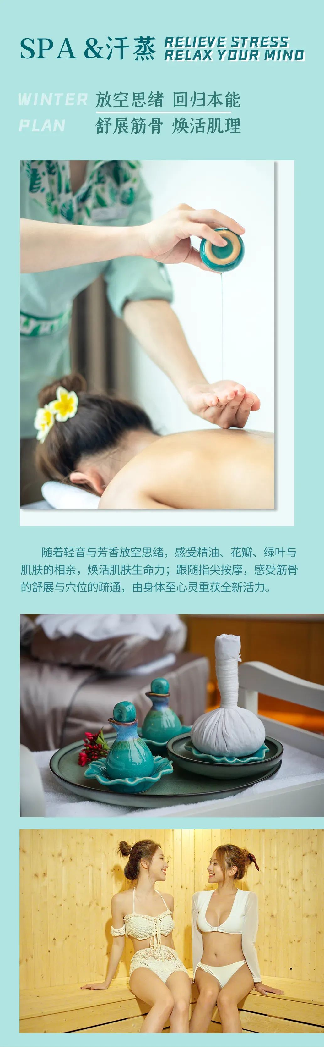 空中鸟巢、波波池,鲜花温泉 、干蒸、湿蒸、水疗、石板浴等