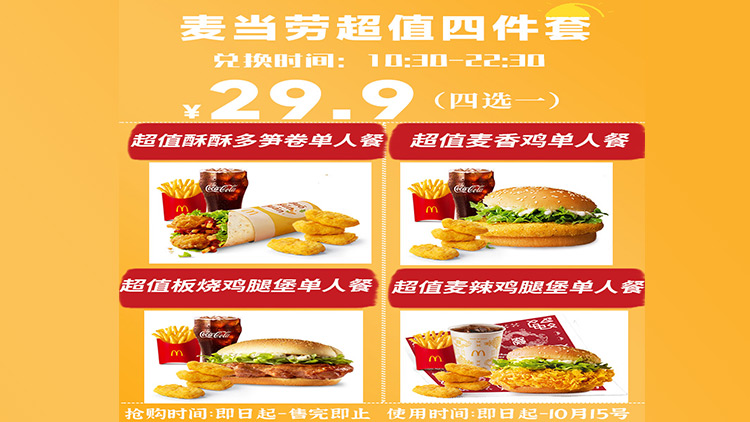 ①......29.9元享麦当劳四件套,4种搭配任你选择