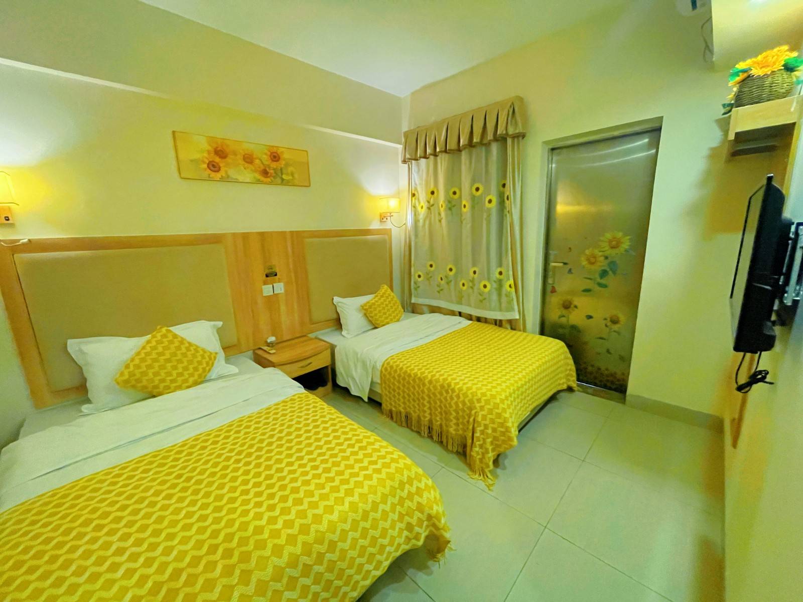 民宿布局是3房一厅设计,全新装修
