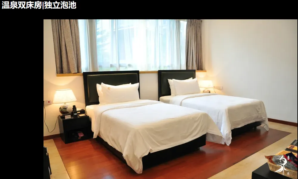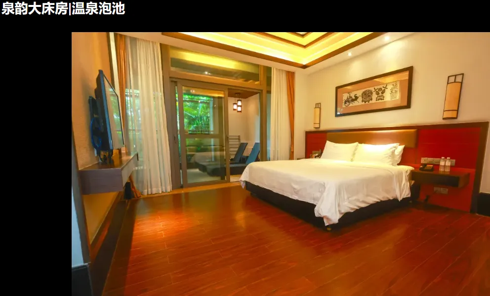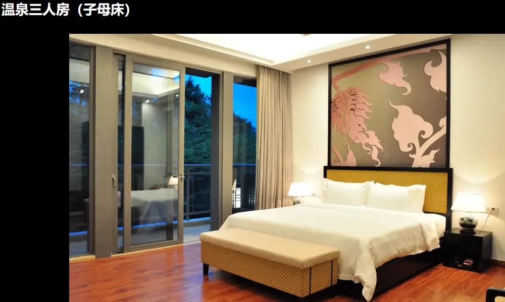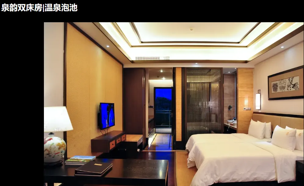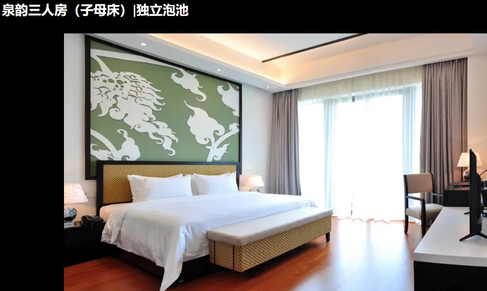 1、温泉客房/泉韵客房/温泉3人房/泉韵3人房1套1晚(随机安排,指定房型入住加收100元/间/晚);
