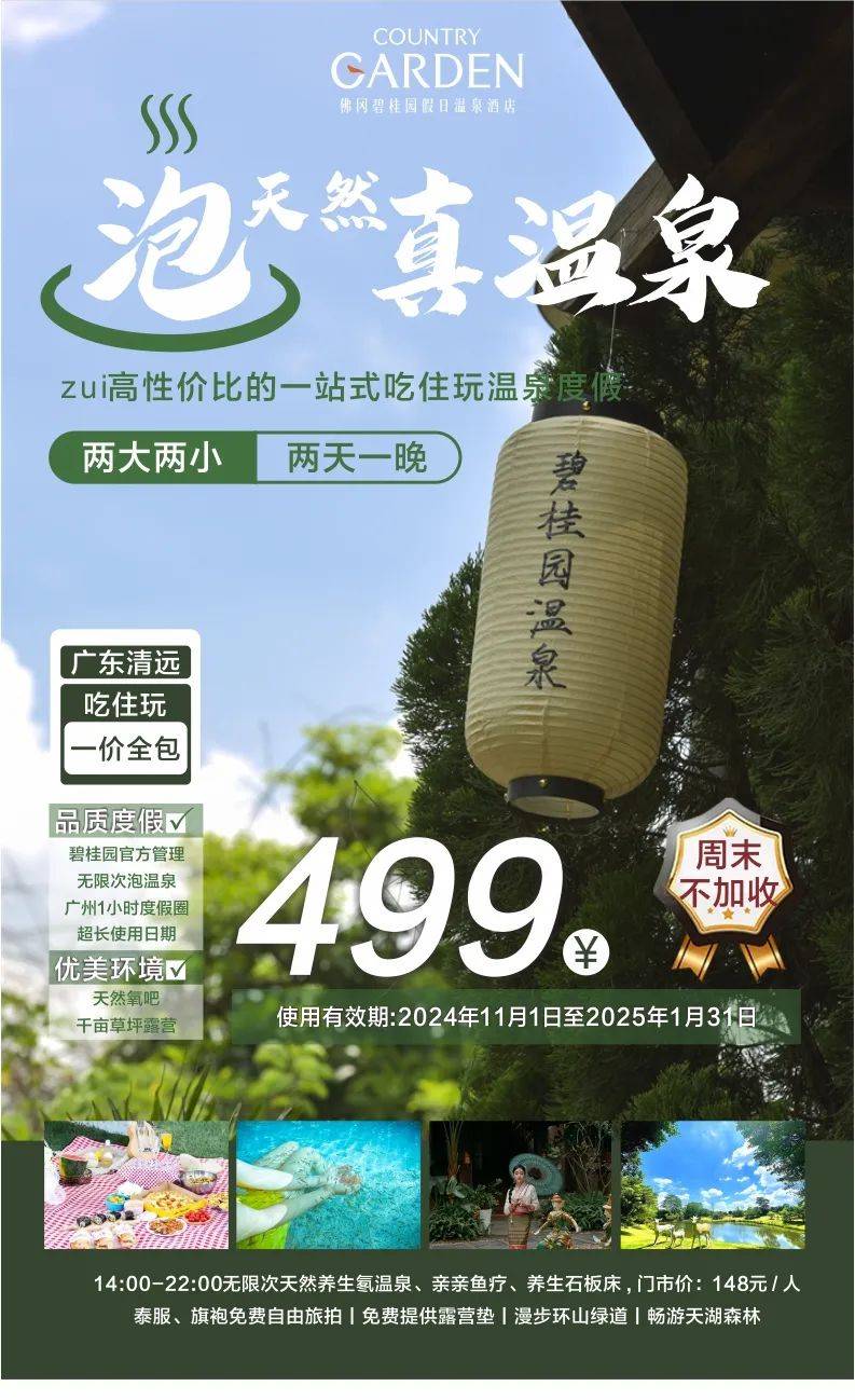 2.该产品为碧桂园官方直营,以度假区模式打造的一站式温泉养生休闲度假区,度假区分副楼区、主楼区、别墅区、游乐区、温泉区等区域,入住的副楼区距离游乐区、温泉区等配套设施约 1km,度假区提供免费观光车接送服务(提供接送时间为 7:30-23:30)。