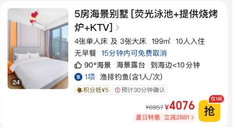 ◆ 5房海景泳池别墅1套(可住10-12人)