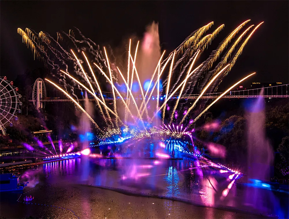 在荡气回肠的《梁祝》水舞灯光秀中