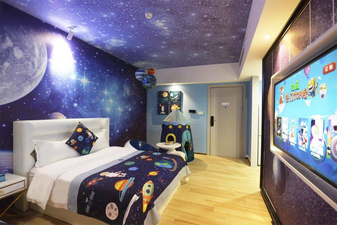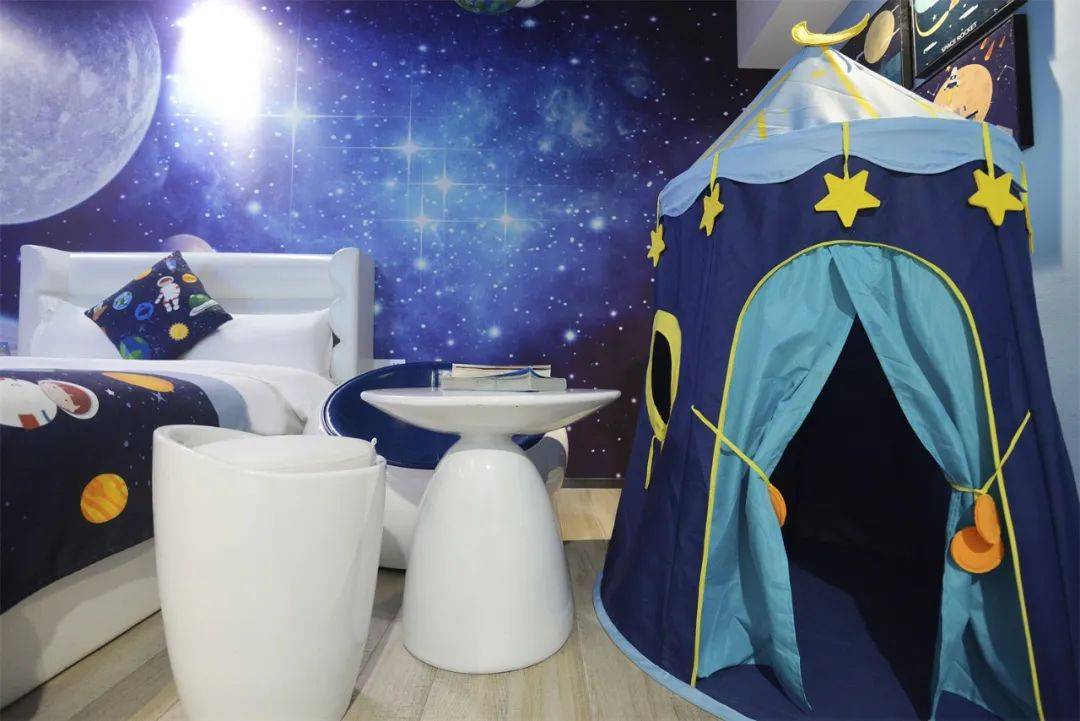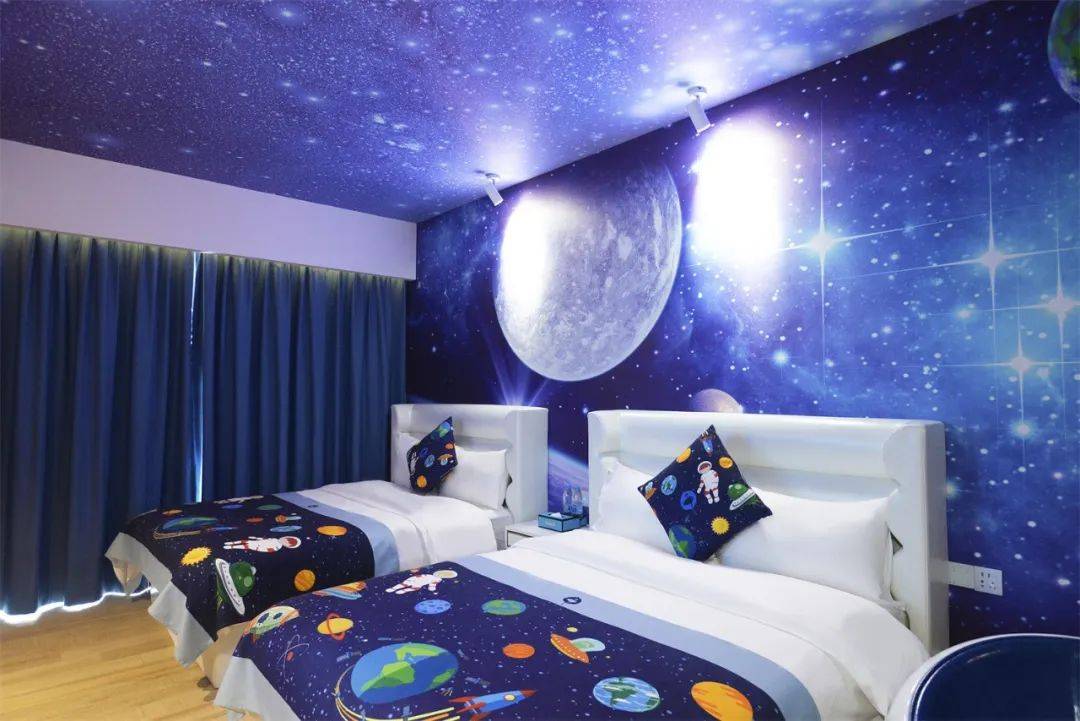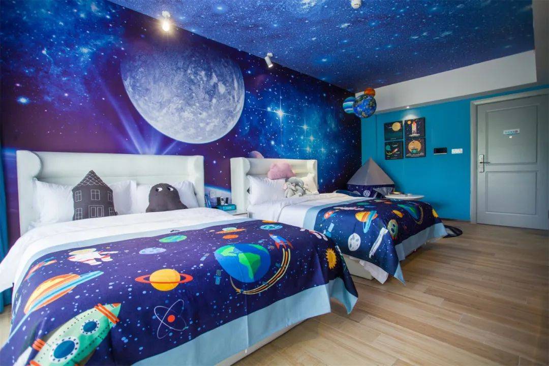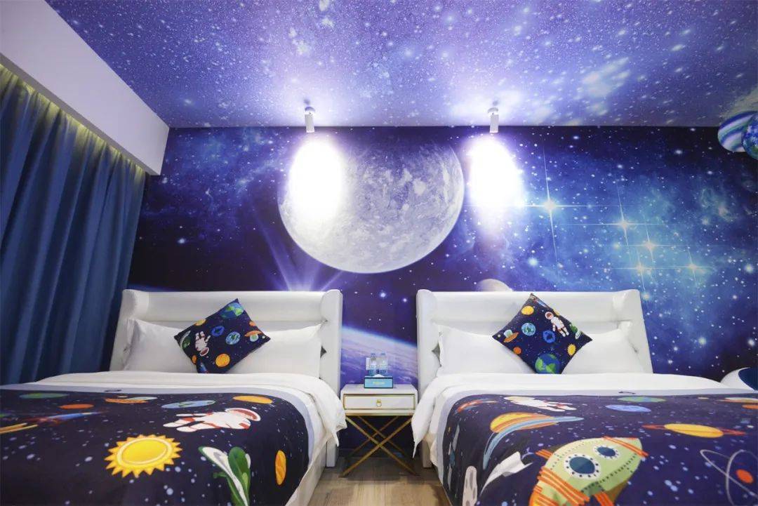这套星空主题的舒适客房,非常具有时尚感与梦幻感,头顶的星空设计,令整个空间变得迷幻且深邃。