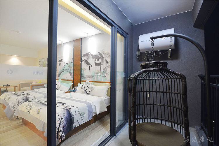 房间带观光阳台,配备网红吊篮,天气晴朗时