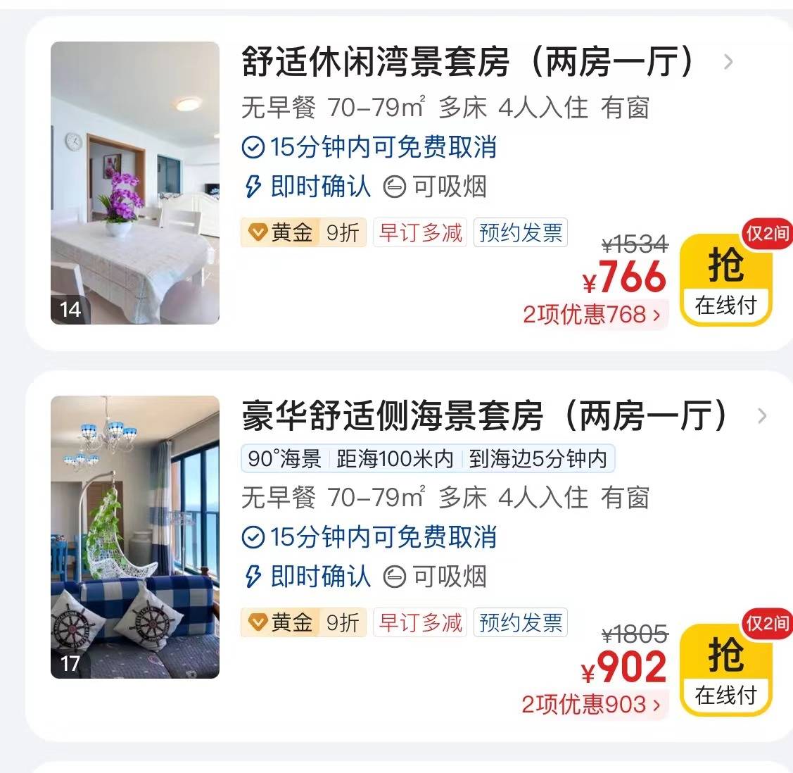 78元=豪华湾景2房1厅