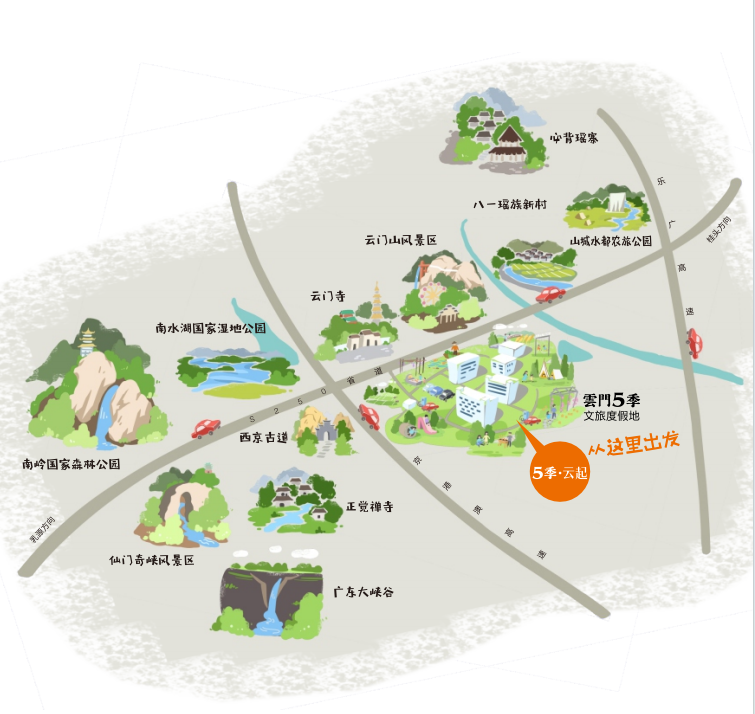 地址:乳源乳源瑶族自治县一六镇250省道一六段2号云门5季文旅小镇
