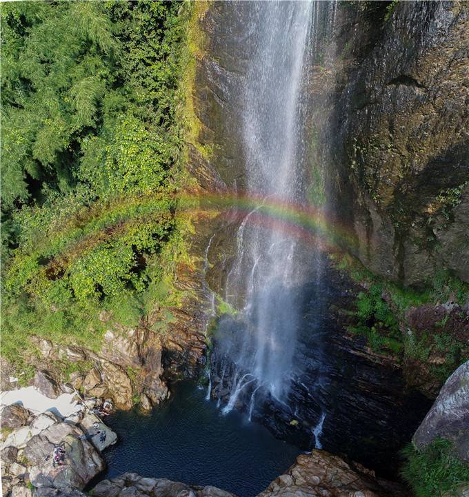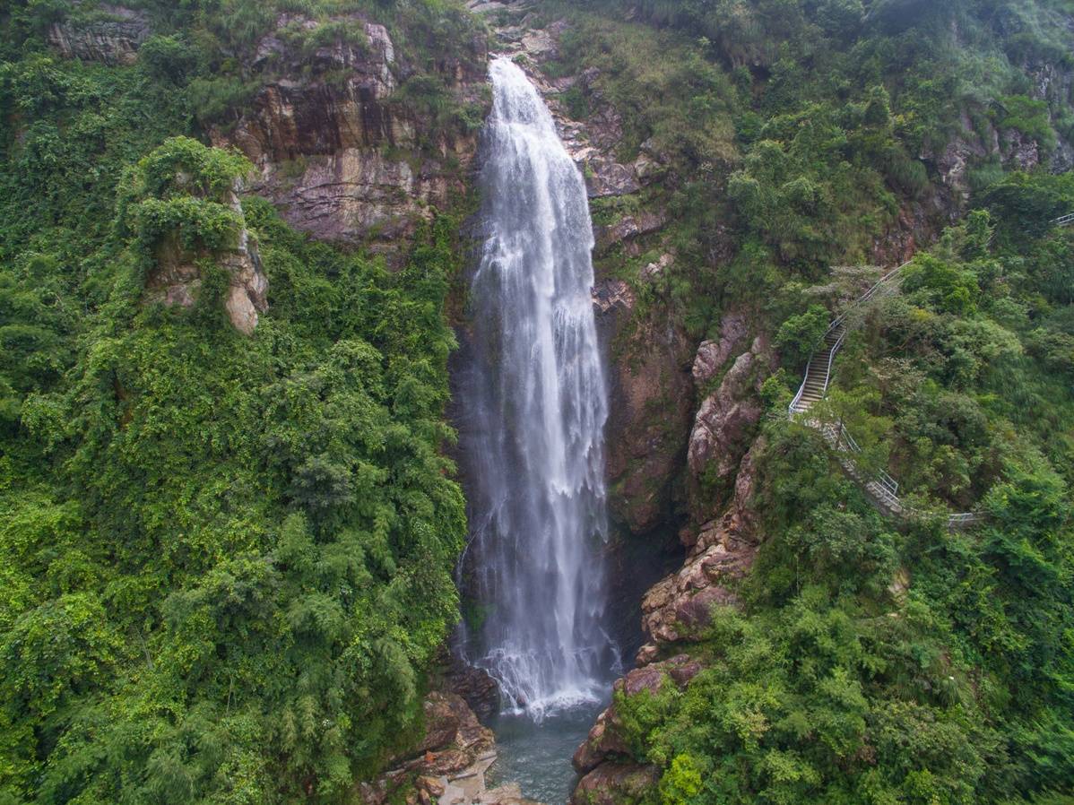 仙瀑从山顶飞泻而下