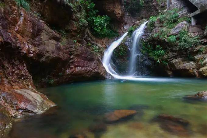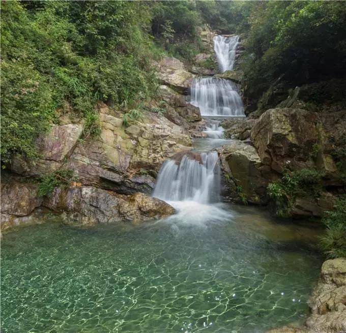 此瀑下为水潭,上有宽阔平台