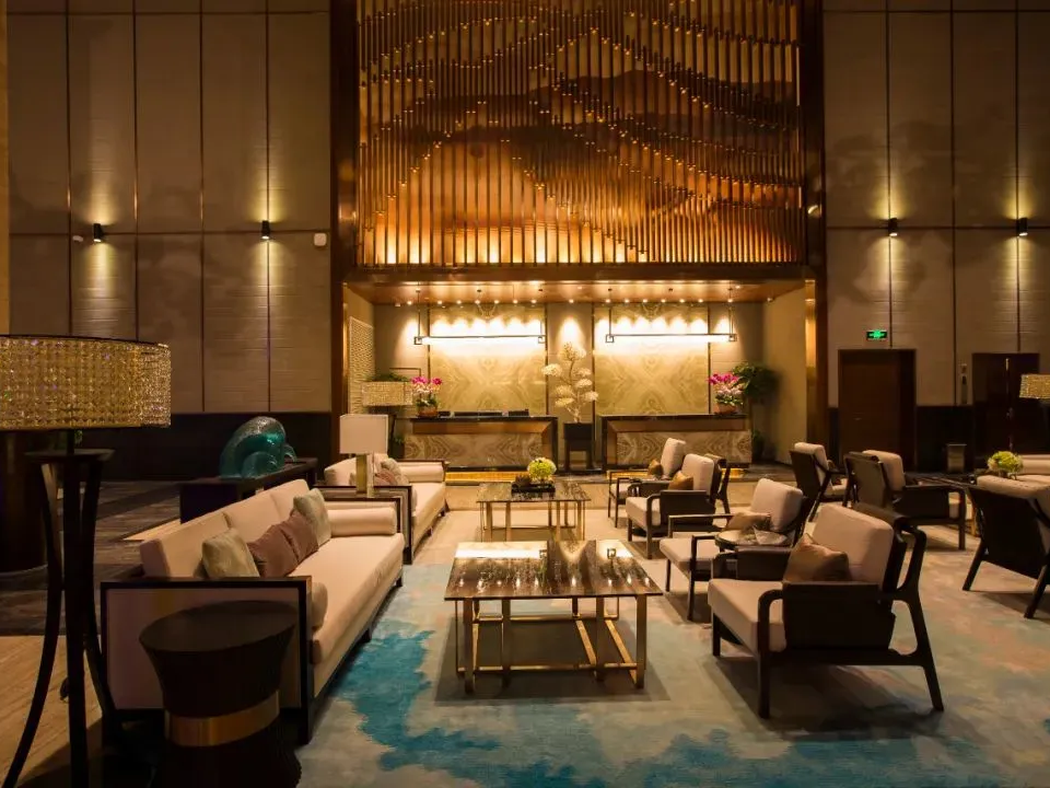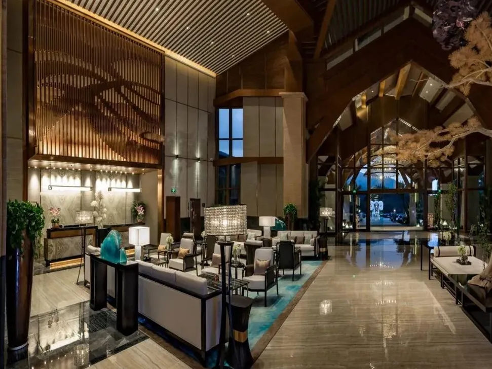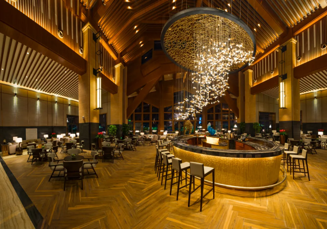 酒店大堂气势恢宏、风格独特、奢华时尚,装饰方面搭配中国传统元素,愿每一位在溪谷的您都能抛开尘世,深度释放自己的心灵,回归最恬淡逸致的生活,感受最真切的自然之美,收获最真挚的祝福与问候。