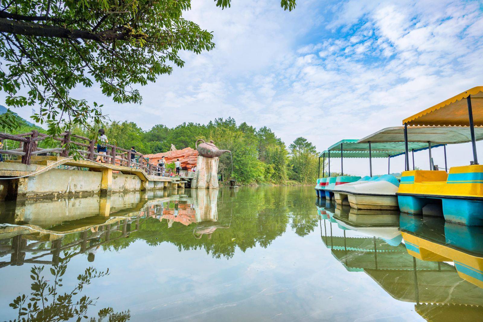 拥有原生态的自然美景,漫步登山道,沿途流水潺潺,植被茂密,奇花异草不断,风景十分优美,途中还有一段刺激的玻璃桥,可以前去体验一番。山脚的牛鱼湖周围还设有众多休闲娱乐设施,滑草场、滑索、射箭馆等,趣味十足。每年3-4月,景区内的野生禾雀花便会绽放,漫山遍野,姹紫嫣红,非常壮观,因此是游玩牛鱼嘴的最佳时期。