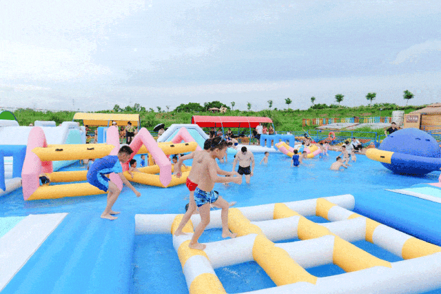 结合动漫和文化元素的水上冲关型主题乐园,由支架池、水城堡、水滑梯、水上玩具、水上间隙以及冲关组件等组合而成,集休闲、娱乐、运动和竞技为一体,适合各年龄段人群参与,一年四季均可体验游玩,是夏日最受小朋友们喜爱的项目!