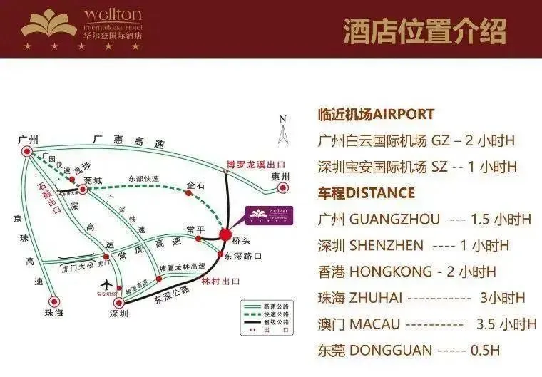 酒店距离东莞(常平)火车站仅15分钟车程,