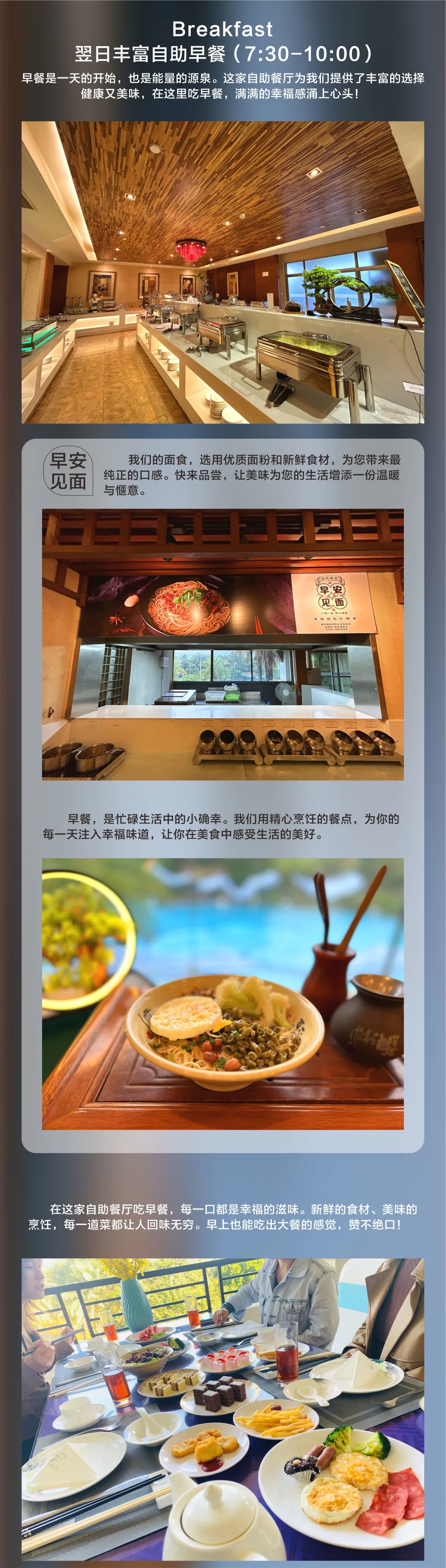 【提前备注享优惠】预约时备注需加购自助早餐和温泉:1.2-1.4 米大童仅需+100 元/人,1.4 米以上或成人仅需+150 元/位,到店加购需按以上门市价购票。