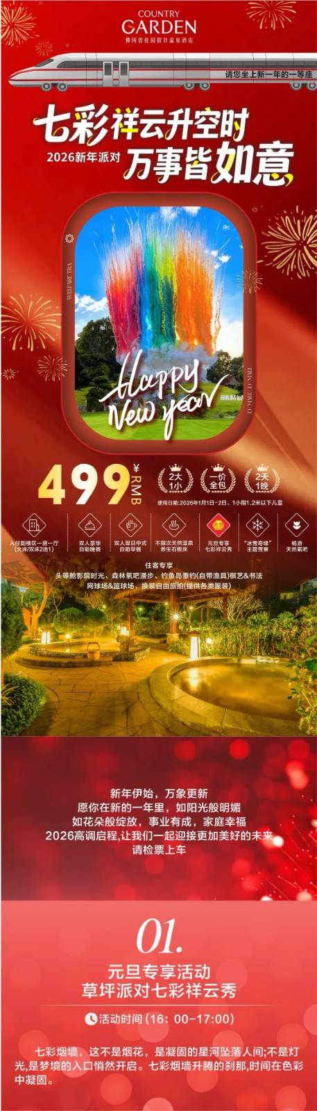 *上述中的2小为2名1.2米以下儿童,超出人数需购票或增订餐饮,不可折换为成人或超高儿童,2026 元旦“七彩祥云”烟墙草坪音乐派对(16:00-17:00)