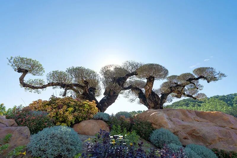 初入天人山水,便是两株象征和平的西班牙油橄榄。