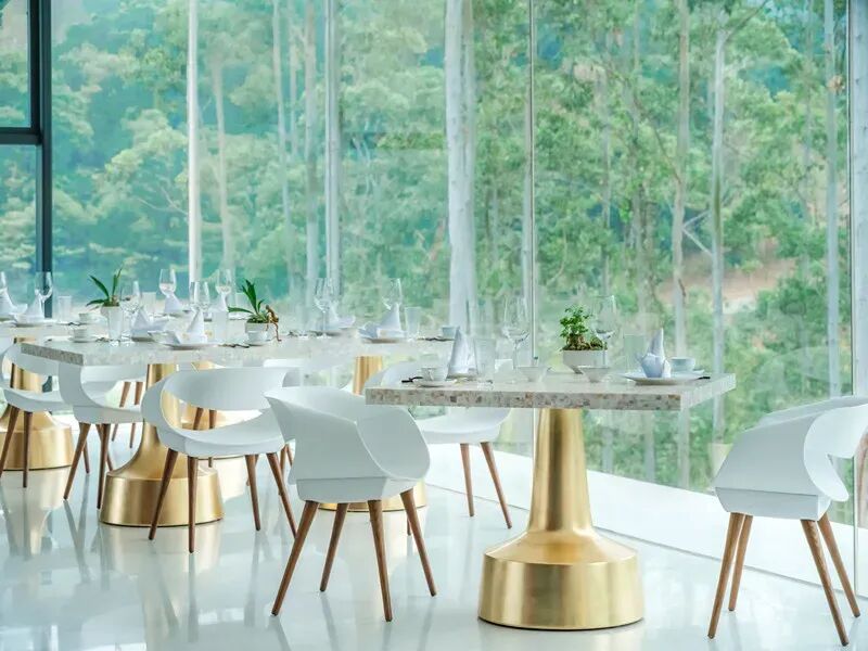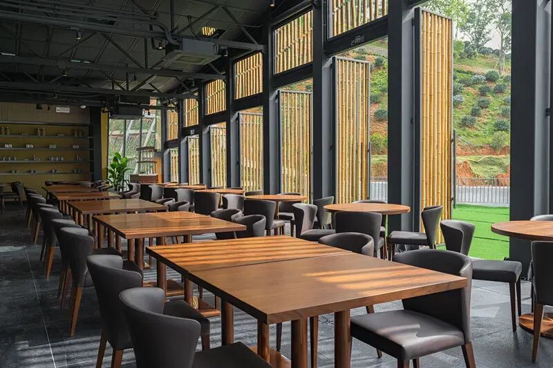 透过270度全落地玻璃,让您在享用美食时,尽收山林美景。