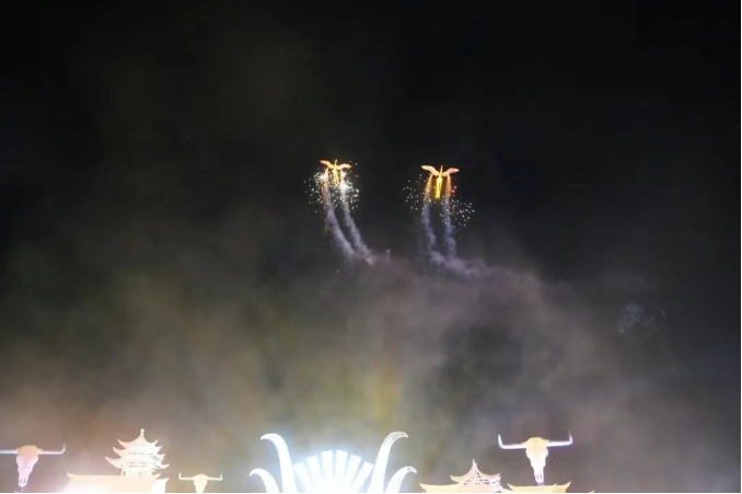 黑科技炸场:机甲战马、巨型银塔、智能声景系统等顶尖技术,将传说中“凤凰沉江”“百鸟朝凤”化为可触摸的视觉奇观。首创“非遗符号空间化”,让瑶族婚