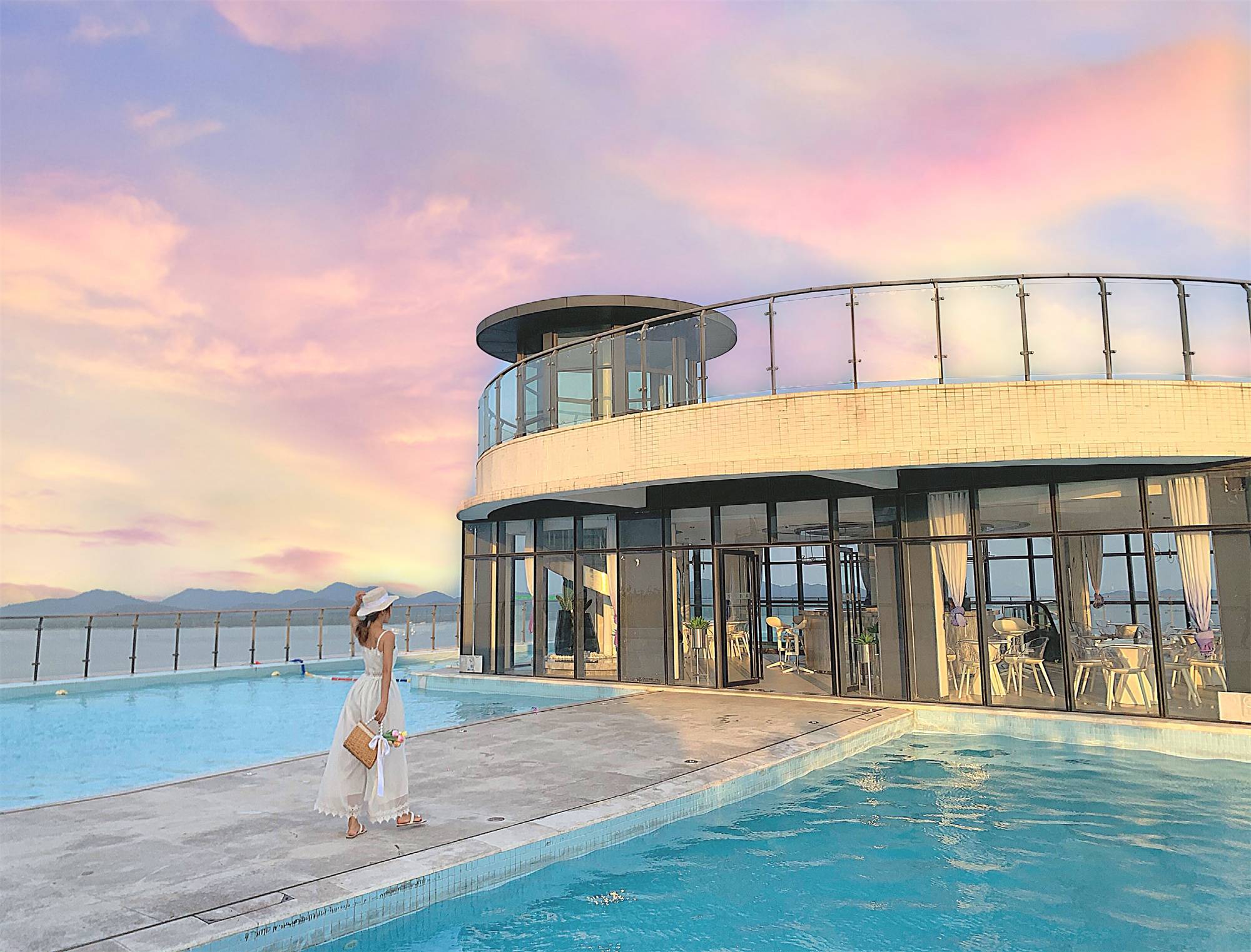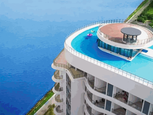 酒店顶楼设有网红无边际游泳池与大海无缝衔接