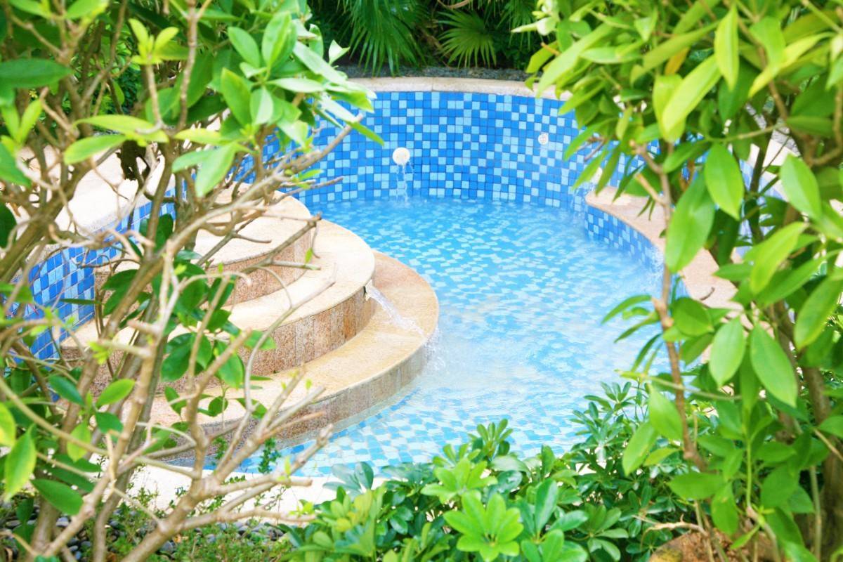换上泳衣,在宽敞的泳池里畅游