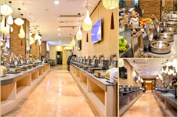 宴会厅位于酒店三楼,可以容纳6围。