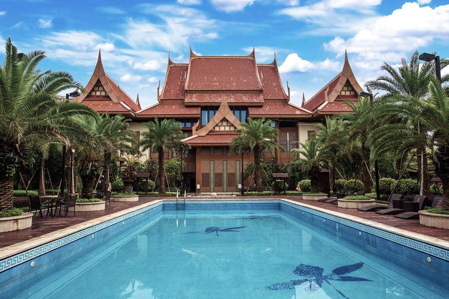 泰式楼阁妖娆艳丽,帷幔飘飘椰影摇。泰国馆绝对不能错过ins超火的鲜花浴、精油浴和草药熏蒸浴等汤池。