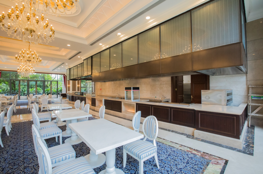 餐厅可 260人同时就餐,提供西式自助餐和散点服务