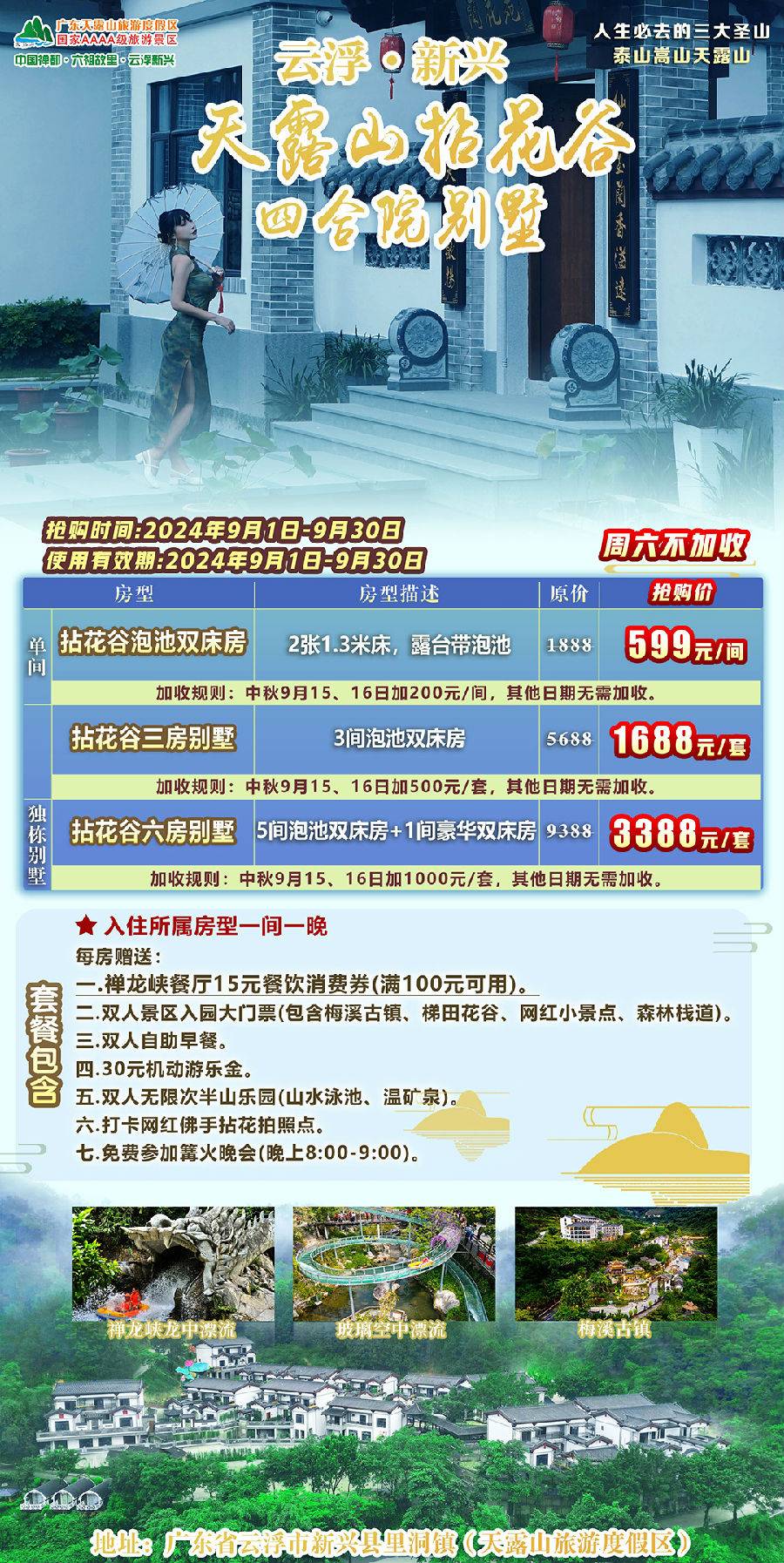 加收规则:中秋(9月15-16日)加收500元/套,其它日期无需加收