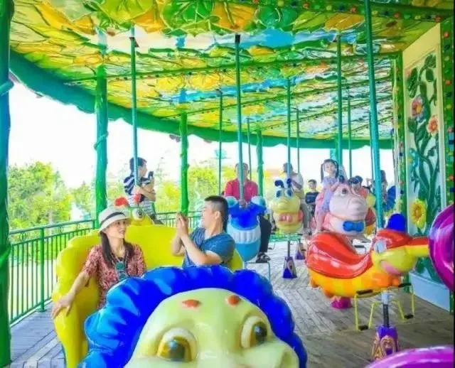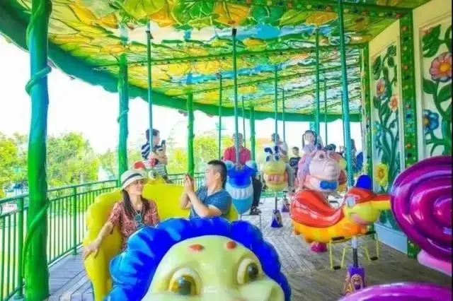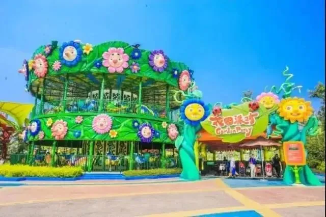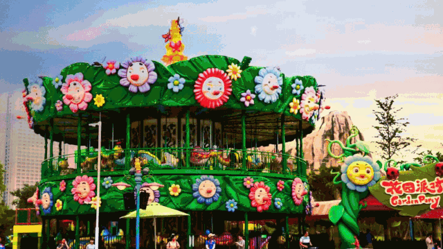 以花海为主题装饰的双层转马类游乐设施