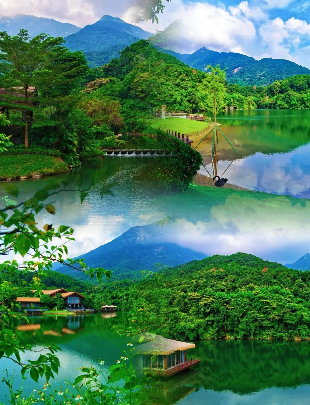 清水湖四面环山,四季风景如画,
