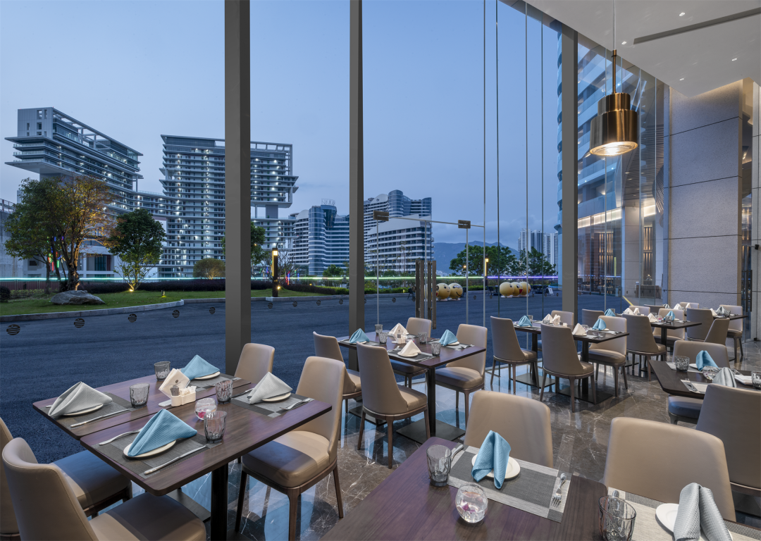 装修简约大气的全日制餐厅,星级总厨精选当地客家食材,融合传统美食的风味要求,通过精心制作,为宾客提供舌尖上的美味。