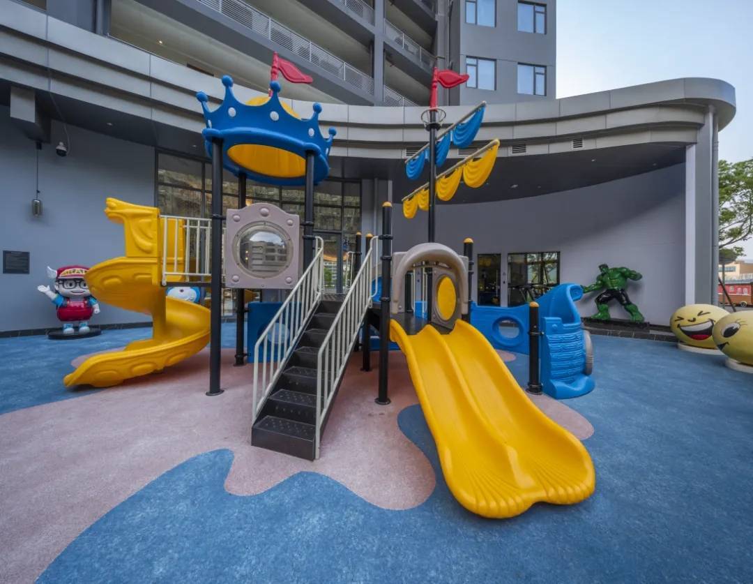 酒店儿童乐园设在户外花园中,让宝贝们与您尽情呼吸山与海的大自然气息,享受假期的亲子快乐时光