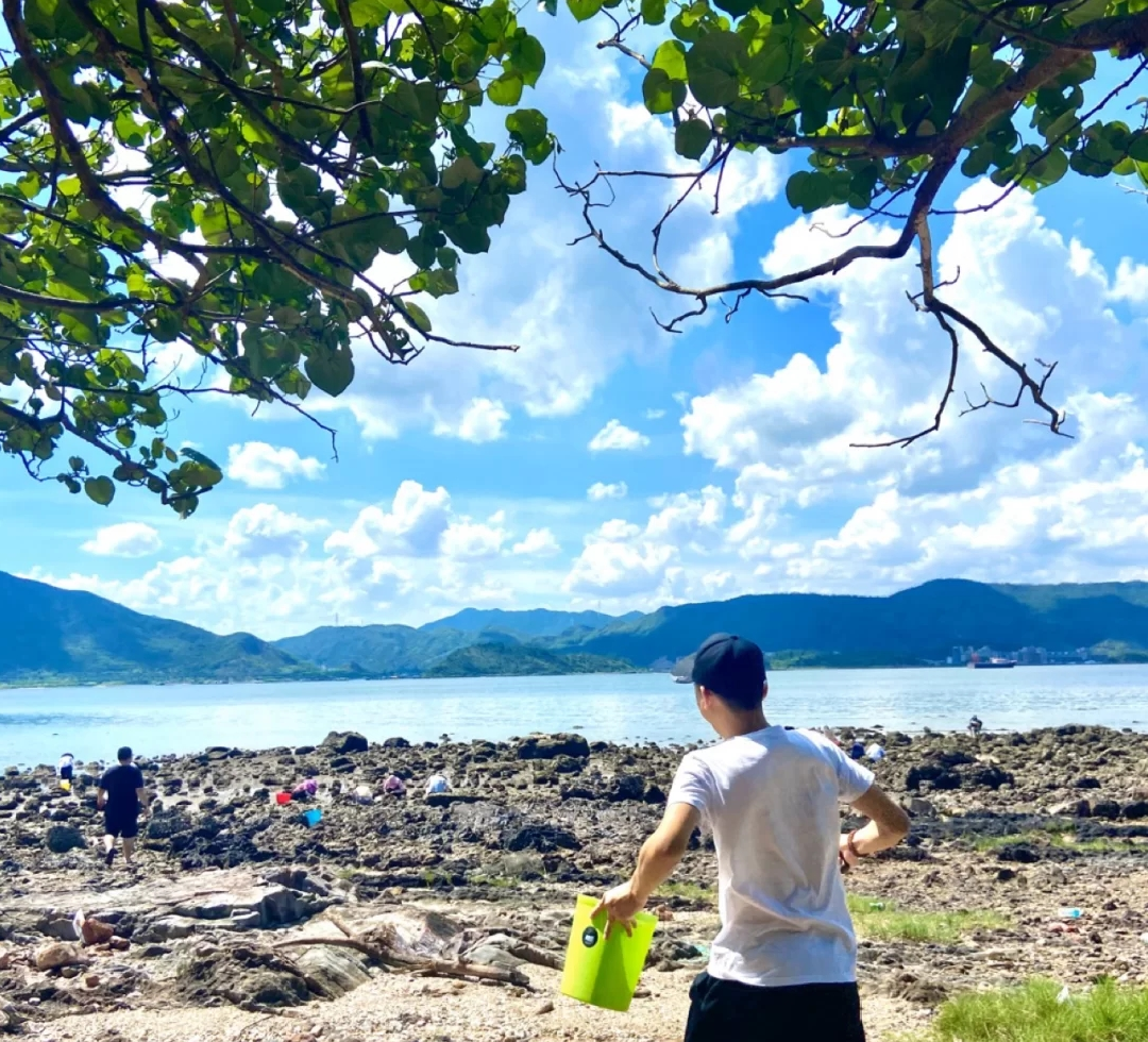 一边带上小桶,去赶海、去抓螃蟹