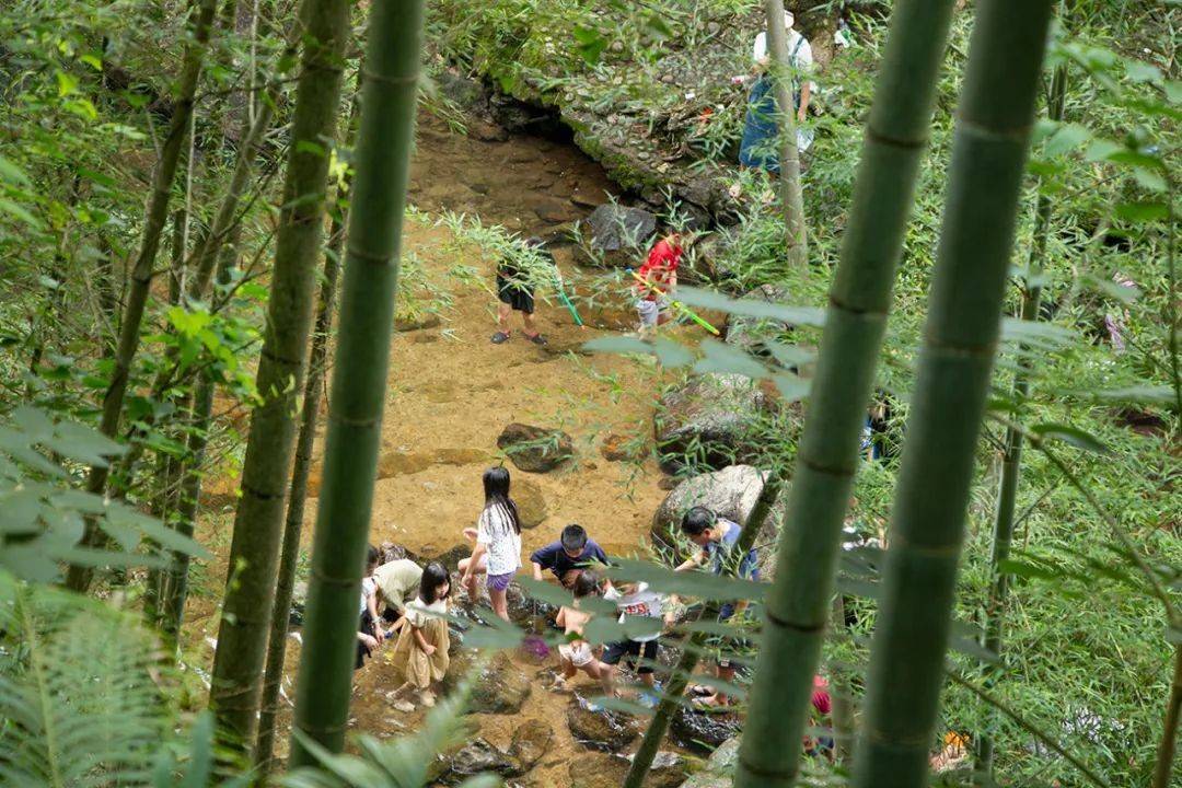 清澈见底的溪水,像一条翠玉在竹海中穿过