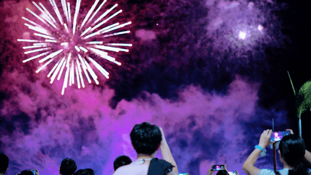 重磅压轴烟花秀来了!绚烂的花火倒映在湖面上~