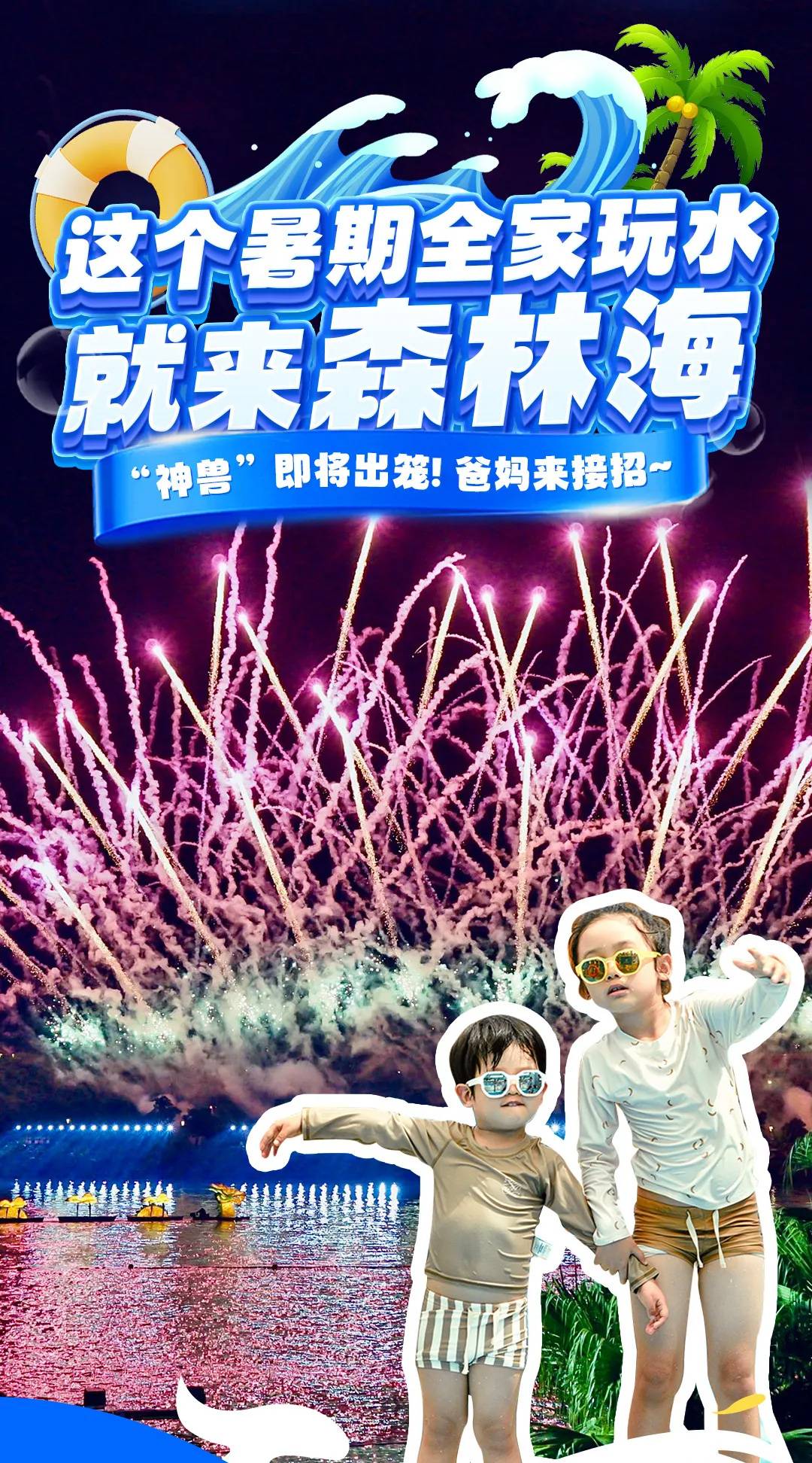 玩转森林海夜晚喷泉舞台湿身蹦迪,赏璀璨烟花秀!