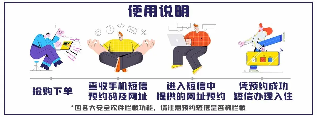 ③ 抢购流程:立即抢购--收到预约短信--通过预约短信预约日期以及补差(以收到的短信为准,收到即预约成功)--办理入住