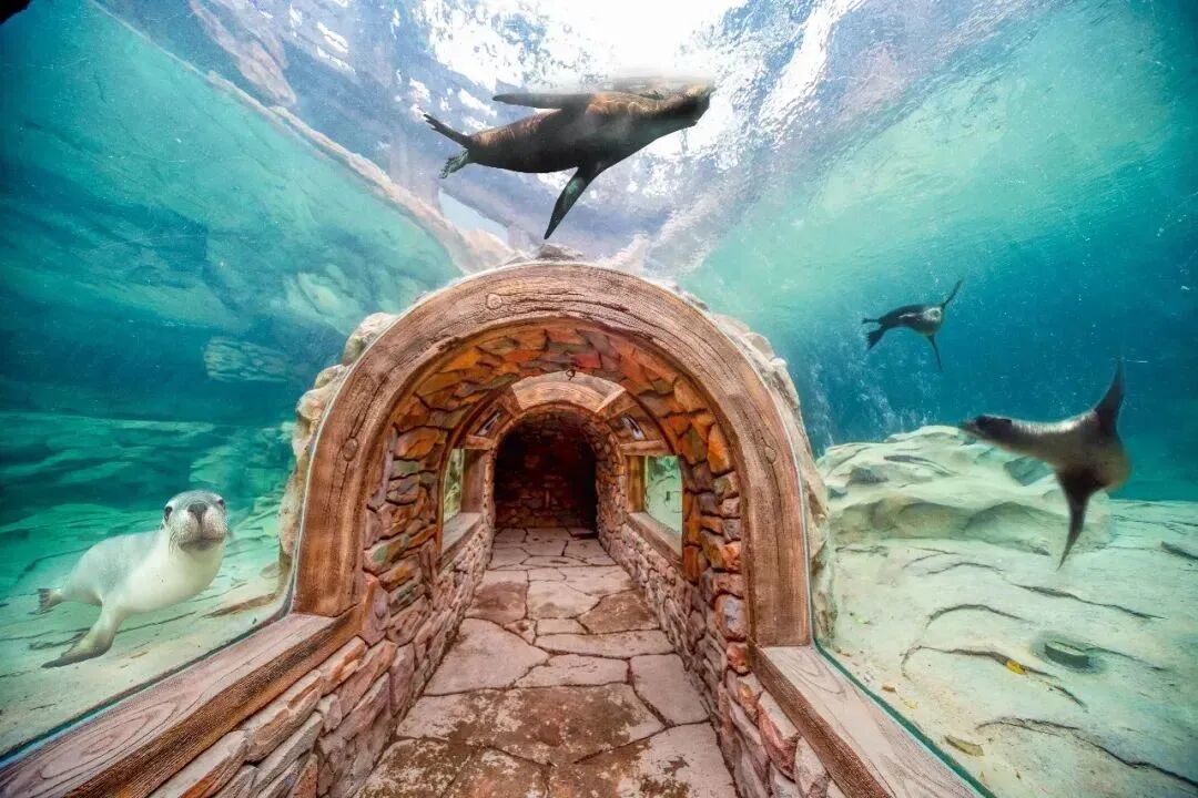 来自海洋世界的小可爱——海狮宝贝有时会爬上岸边优哉游哉地晒日光浴,有时会潜入海底舒展一身游泳才艺;透过海底观光隧道,我们可以将它们的海底生活环境一览无遗,快来长鹿海狮馆一睹为快吧!