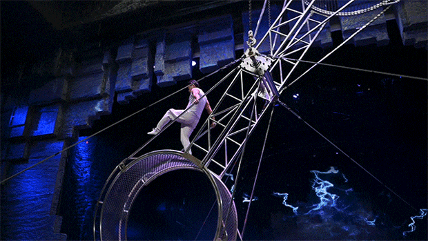 高空特技惊险表演让观众每时每刻都处于惊心动魄的状态,在平衡飞轮上跳绳、高空绳索旋转、高空弹床弹跳...精彩绝伦掌声不断!