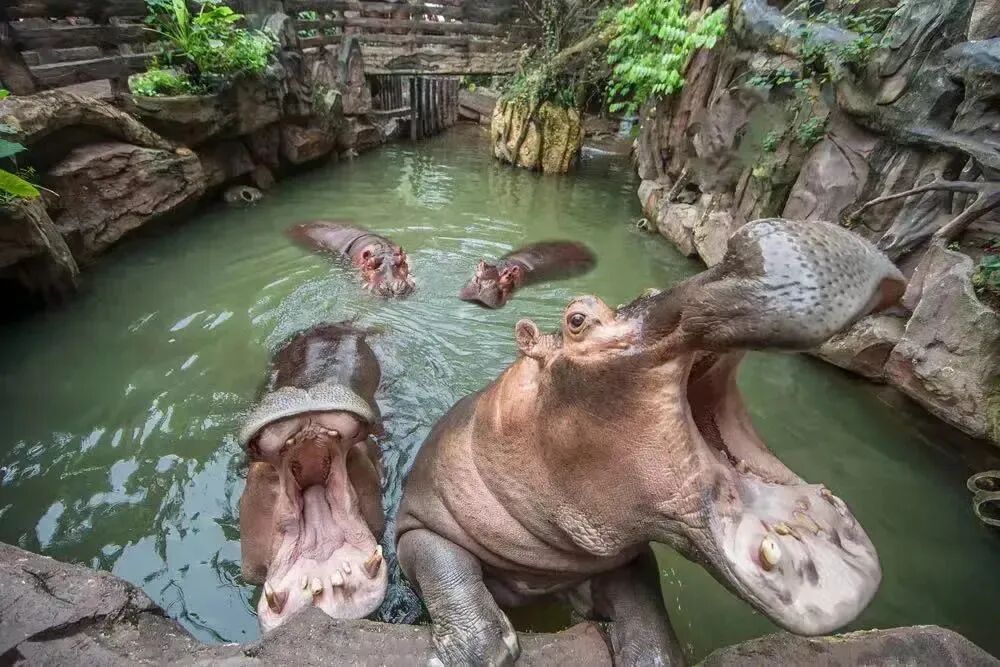 别看河马的样子这么可爱,它们可是陆地上体积第三大的哺乳动物,仅次于大象和白犀牛,体重以吨为单位的它,除了是动物园内的大吃货,还是个游泳健将!
