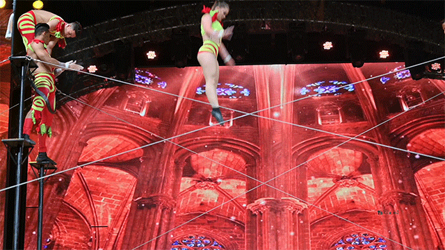高空特技惊险表演让观众每时每刻都处于惊心动魄的状态,在平衡飞轮上跳绳、高空绳索旋转、高空弹床弹跳...精彩绝伦掌声不断!