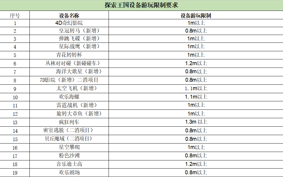● 因探索王国设备年度检测,部分设备会根据检测进度临时停运,具体开放项目以现场公示为准!