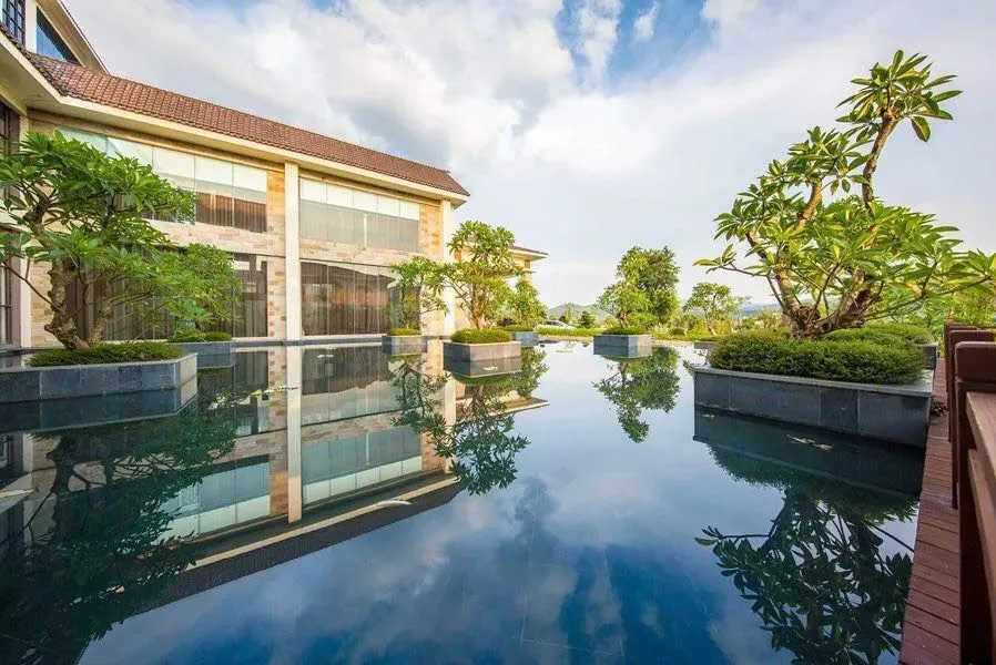 酒店介绍:广州三英温泉度假酒店位于派潭镇高滩村温泉路,地处白水寨省级风景名胜区,位居群山之中,融大自然为一体。酒店紧邻白水仙瀑,背倚南昆山、石门山等国家森林公园,让你身享私家温泉的同时享受来自天然的大氧吧,远眺窗外名山仙瀑,纵情徜徉天地间